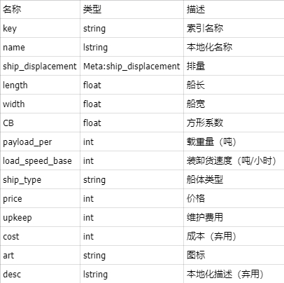 - 在payload_per和load_speed_base这两个字段里,集装箱船的单位为箱,应为实际载重/20