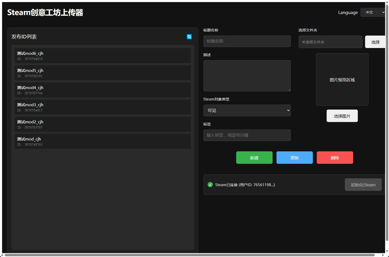 - 工具会自动检测当前登录的steam账号,未登录则不可上传