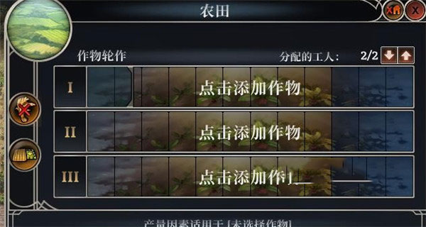 3、史上最细致的耕作系统:从10种具有独特生长特性的作物中进行策略性选择,配置作物轮作以保持土壤肥力,避免高温和霜冻的破坏,防止病害的累积。随着时间的推移,培育你的田地,清除杂草和岩石,提高肥力并调整土壤混合比例,以实现最大的作物产量,从而满足不断增长的人口的需要。