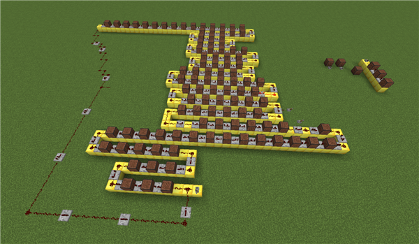 最后,在红石音乐的制作中,往往还需要加上和弦,表现形式为多个音符盒随同一个信号响起,听上去很容易,但这部分内容其实相对复杂,因此攻略君会放在以后再讲哦。
