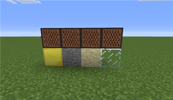 此外,音符盒的音色(即发出乐器声音类型)取决于音符盒下方放置的方块类型,不同的音色起始的音高也不同,因此不能在摸索熟悉一种音色之后就将其套入其他音色中去。