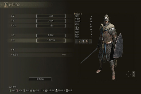 2、初始属性值:生命15、精神10、持久11、力量14、敏捷13、智力9、信仰9、幸运7