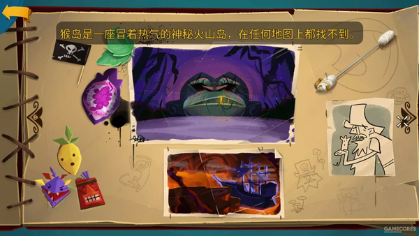 而对于新玩家,《重返猴岛》设计了一本内置的《盖布拉许·崔普伍德的回忆录》,就像是一本拼贴了许多冒险照片的插图集一样,玩家可以通过点击上面的照片它了解到《猴岛》系列中所发生的每一个冒险故事,以及盖布和他的伙伴们那些冒冒失失又带着点啼笑皆非的行动轨迹。