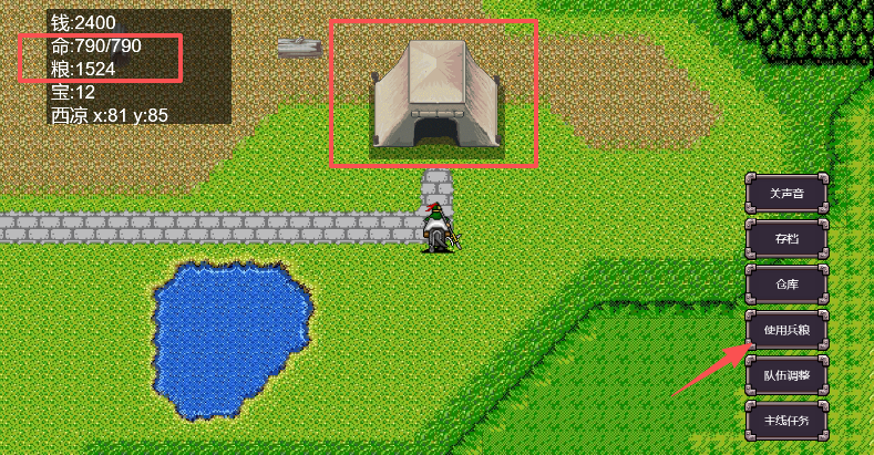 6、到达目的地,点击屏幕右下方的使用兵粮可以直接回复血量,随后就可以开始挑战了。
