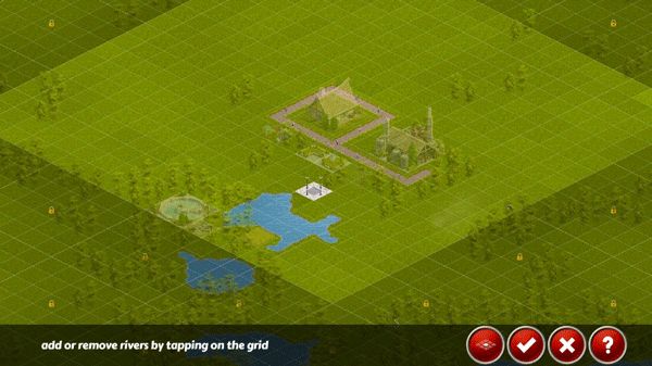 3、建造湖泊:点击左侧锤子按键,再选择水滴按钮,点击屏幕选择建设的位置即可;