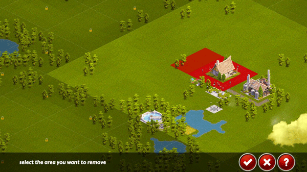 4、去除建筑:点击左侧锤子按键,再选择铲车按钮,点击屏幕选择拆毁的位置即可;