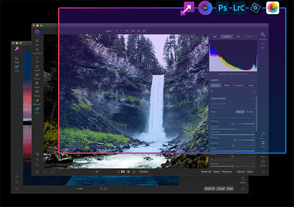 ON1 Resize 2023 既可用作 Photoshop® 和 Lightroom® 的插件,也可用作独立应用程序。