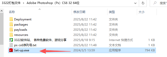 1、解压得到Adobe Photoshop(Ps)CS6 32/64位文件包,以管理员身份,运行Set-up.exe;