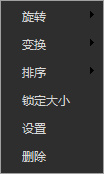 6、右击素材出现操作菜单,可以进行旋转、变换、设置、删除等操作。