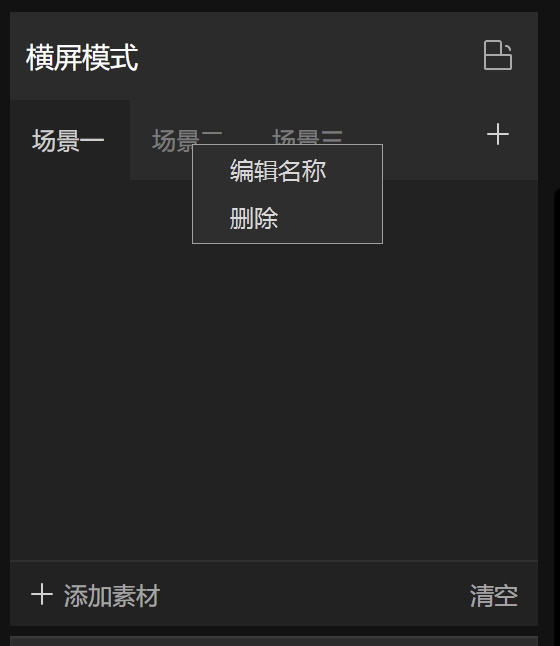 一个场景可以包含若干个素材,用户可以在多个场景进行切换。