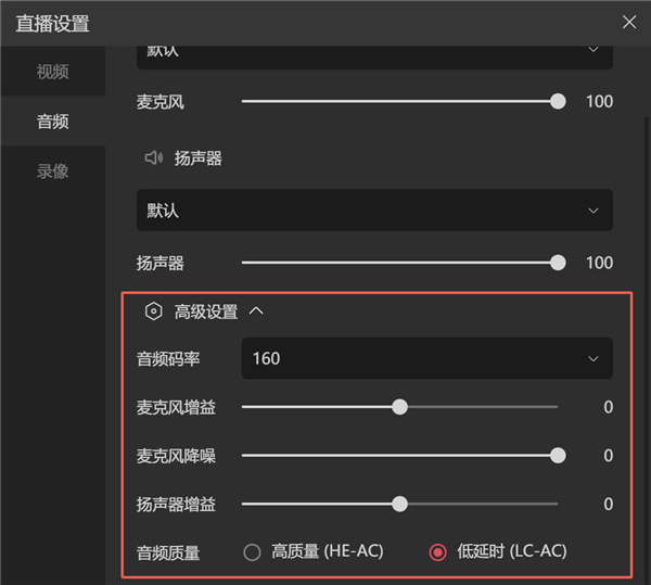 3、点击”高级设置“可以设置麦克风的降噪等。