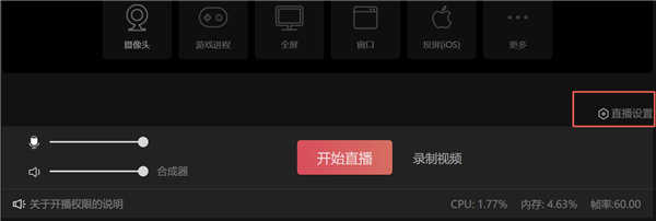 点击开播按钮右上方的“直播设置”可以进入直播设置页面。