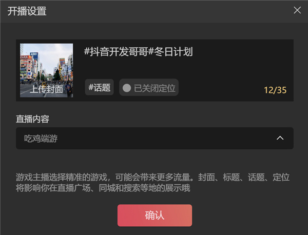 这里可以设置直播封面、话题、直播内容等,精准的直播分类选择可能会带来更多流量。