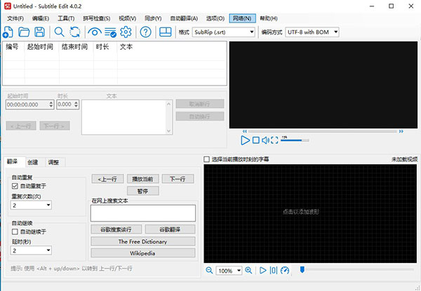 Subtitle Edit是来自国外的一款免费开源的字幕编辑软件。支持多种字符编码和字幕格式,拥有多种字幕编辑工具的优点如合并、分割、错误检查、谷歌翻译等功能。不仅能够实时预览创建的字幕和视频,还可以通过音频波形来辅助设定字幕的位置和停留时间,虽然需要一些字幕制作方面的技巧,但进行简单的字幕制作,对于初学者来说是一款很不错的辅助工具。使用Subtitle Edit的过程也是非常简单,它的用户界面支持简体中文,可以直接用记事本打开。如果需要设置默认的视频播放器,可以按照软件的提示下载并安装。在字幕出现语法问题时,会用橙色标注出来,并用红色字体显示其错误。总的来说,Subtitle Edit 是一款功能强大且实用的字幕编辑器,无论是专业的字幕编辑人员还是对字幕编辑有需求的用户,都可以通过Subtitle Edit来实现自己的需求。