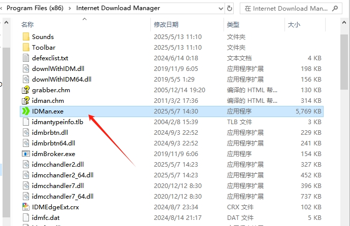 6、找到软件安装路径,默认路径为【C:\Program Files (x86)\Internet Download Manager】,双击IDMan.exe,即可畅享“IDM俄罗斯大神版”。