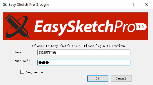 5、双击运行桌面上的EasySketchPro3,随意输入Emial和Auth Code,输入完成点击OK