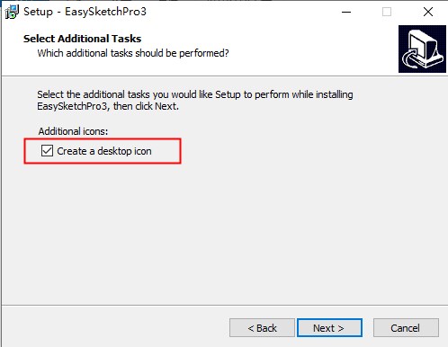 2、注意一点,在如下图位置若勾选“Create a desktop icon”则程序会自动创建桌面快捷方式,若不勾选则程序不会在桌面上出现