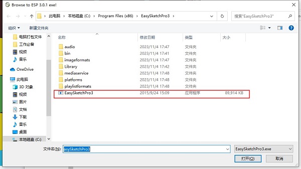 4、进入程序的安装路径,默认路径为C:\Program Files (x86)\EasySketchPro3,选中EasySketchPro3.exe,并点击打开