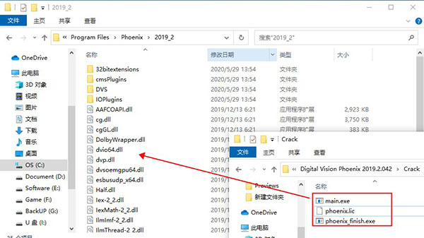 6、再将"main.exe"和"phoenix_finish.exe"复制并替换到软件目录下;