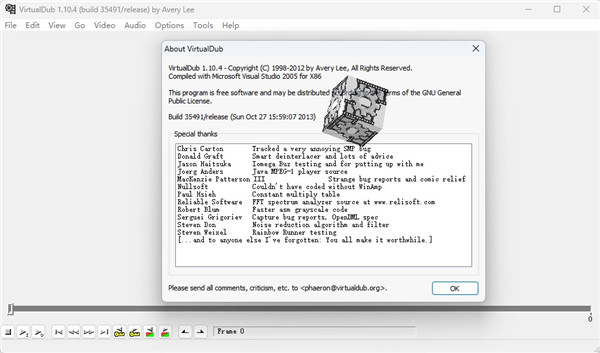 VirtualDub(视频剪辑软件)是一套免费的视频捕获及多媒体剪辑软件。虽然小巧但它的功能一点也不输给专业软件。在 VirtualDub 中主要的功能可以区分为两大部份,一是可以对 AVI、MPG-1 以及其他格式(需要输入插件支持)的影片进行剪辑,支持输出格式为 AVI、flm、GIF 等;二是可以搭配您的影像补捉卡、摄像头等做即时的动态影像捕获。VirtualDub 还支持视频、音频滤镜,内置了多种视频和音频滤镜,可以在转换过程中对视频、音频进行优化和特效处理,比如调整大小、裁剪、改变色调、亮度、去除交错,分割立体声、变调等等。此外,还支持批处理操作、任务管理和命令行模式。新版支持自定义外部编码器,可以利用外部编码器导出不同格式的影片。