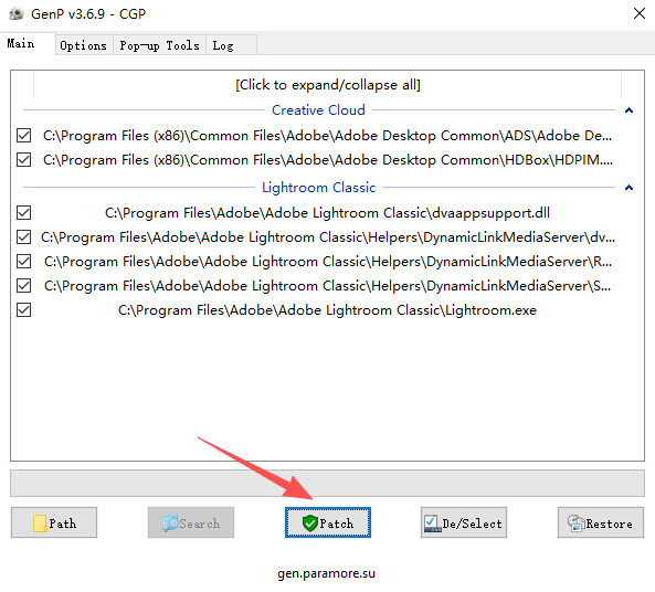 6、点开右键小箭头,可以发现出现了需要激活的Adobe Lightroom Classic 2026,点击Patch;
