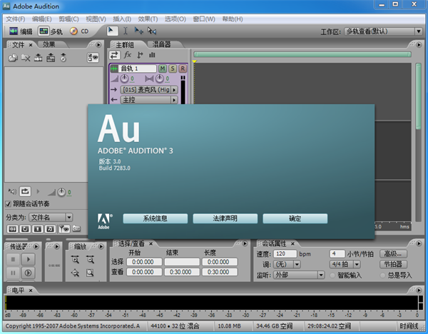 Adobe Audition 3.0(Au3.0)中文版一款专业的音频编辑和混合环境,主要为用户提供先进的音频混合、编辑、控制和效果处理功能。用户可以借助Au3.0中文版,以前所未有的速度和控制能力进行录制、混合、编辑和控制音频。adobe audition 3.0可以进行创建音乐,录制和混合项目,制作广播点,整理电影的制作音频和为视频游戏设计声音。总之这款软件的一切都只是为了音频而服务。新版改进和新增了许多新的功能,包括改进的多声带编辑,新的效果,增强的噪音减少和相位纠正工具,以及VSTi虚拟仪器支持等。这些新功能可以为用户的音频操作提供更为杰出的电源、控制、生产效率和灵活性,有需要的用户欢迎下载使用。