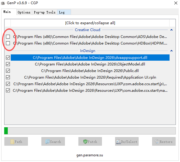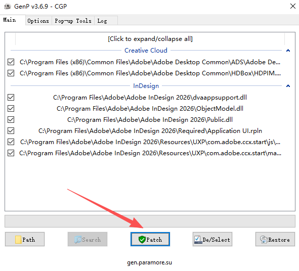 6、点开右键小箭头,可以发现出现了需要激活的Adobe InDesign 2026,点击Patch;