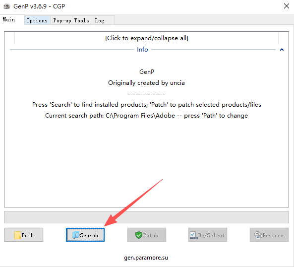 5、解压激活补丁,运行【GenP-v3.6.9.exe】,点击【Search】;
