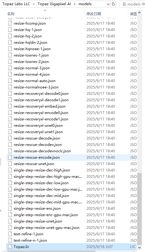 4、将Topaz.lic文件复制到"C:\ProgramData\Topaz Labs LLC\Topaz Gigapixel AI\models\"目录;