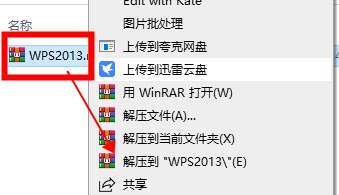 1、鼠标右击【WPS2013】选择【解压到 WPS2013】。