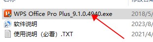 2、打开解压后的文件夹,双击【WPS Office Pro Plus_9、1、0、4940】。