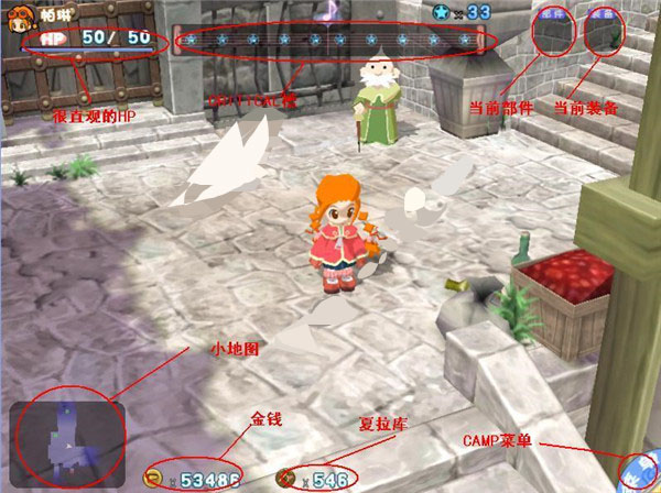2.TARGETATTACK:接近敌人跳起后,敌人身上的锁定圈会变红,此时如果攻击后,还能再跳跃一次,并再一次进行攻击,从而形成连续的跳跃攻击。不用控制方向,会自动往目标方向前进,有些迷宫中必须使用此项技能。