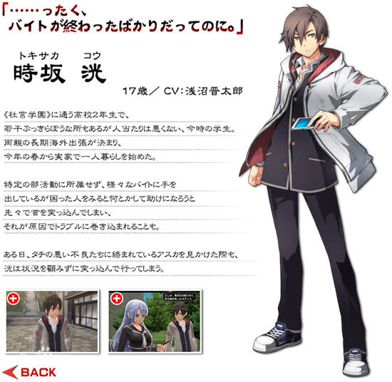 杜宫学园的在校高二学生,看上去相当粗鲁但是对人并不坏。由于父母决定长期到国外出差,从今年春季开始一个人在家里过。没有加入特定的社团活动,但是看到有困扰的人时会尽力帮忙,接下各种各样的工作,但是似乎有些爱多管闲事,这也是让他被卷入某件“麻烦事”的原因。某天,看到被恶劣的不良少年们纠缠的明日香时,洸不假思索地冲了上去。
