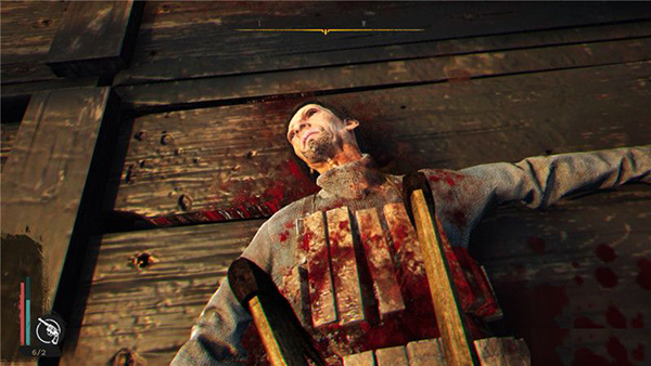 红色凹槽为生命值,主角在受到攻击时,生命值会降低,但可以通过使用医疗包恢复。