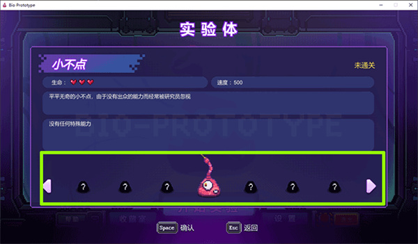 3、在实验体选择界面选择好已经解锁的实验体,点击空格键确认;