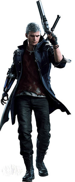 年轻的恶魔猎人,于移动式万能事务所(Devil May Cry)以击退恶魔维生的青年。虽因某事件而失去了恶魔的右臂(DEVIL BRINGER),但在Nico的协力下获得新的兵装,对抗开始侵略的恶魔群。