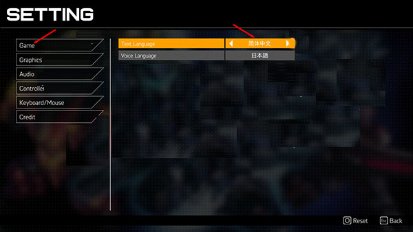 7、在Game选项中的Text Language,选择简体中文,保存后游戏就是中文的了;