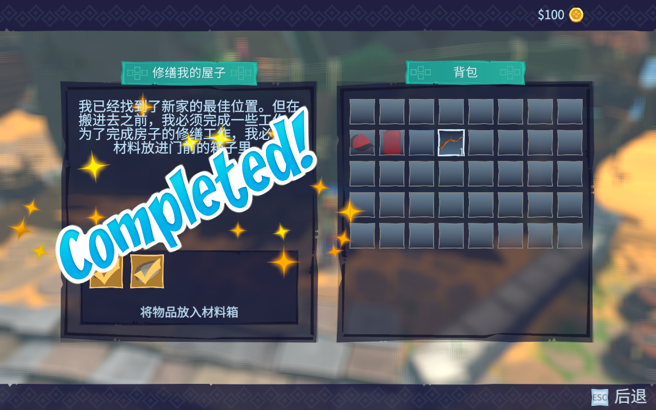 9、完成后,将拾取的材料提交到材料箱就可以修复房子了。