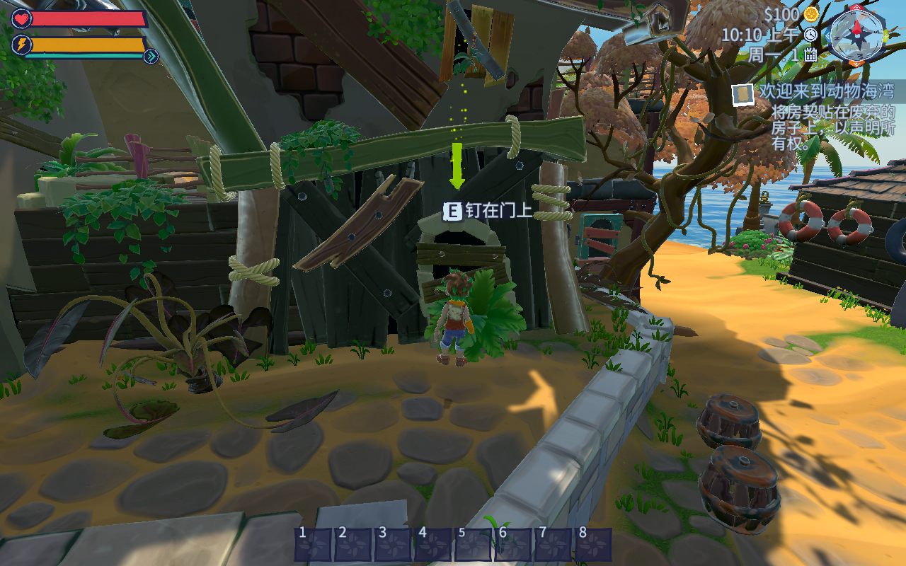 8、由于房子年久失修,玩家需要去海边寻找相关材料,木头和石头。