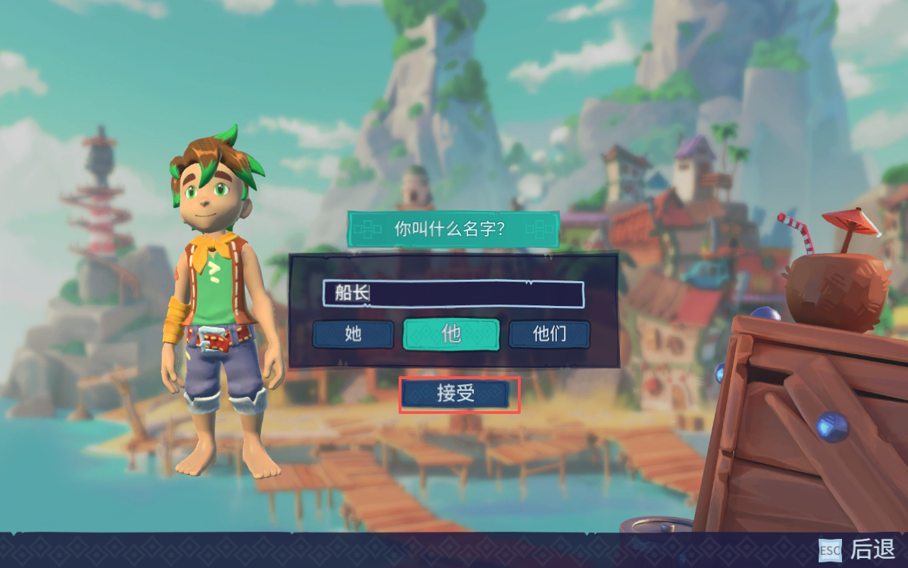 2、随后玩家选择性别和昵称,完成后,点击“接受”。