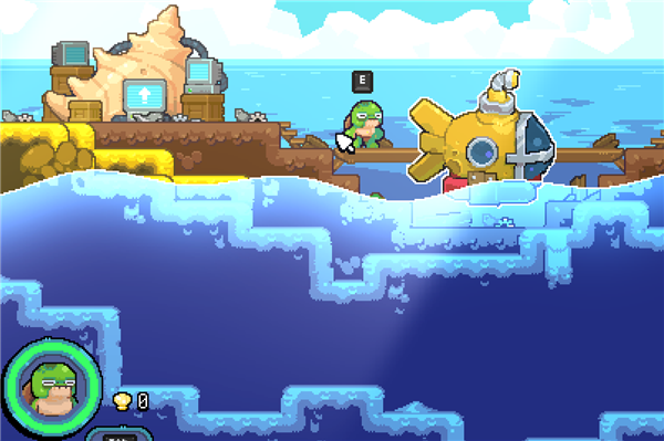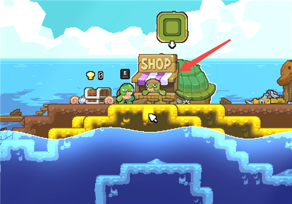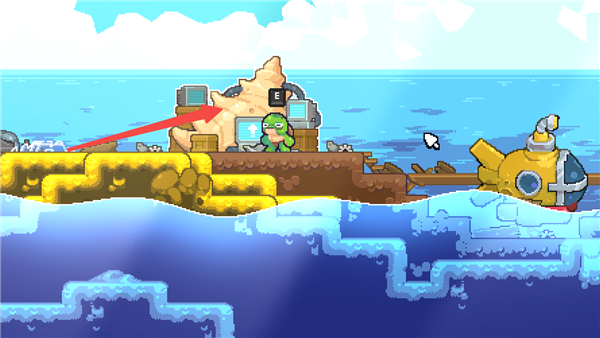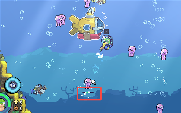 1、进入龟龟潜海记游戏中,我们先走到升级处,按E键交互解锁潜艇。