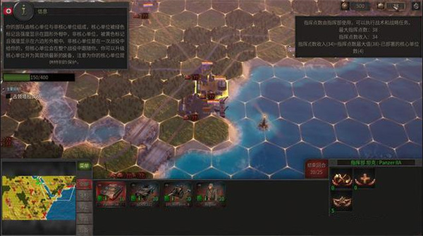而屏幕右上角的指挥点数可以用来装载部队和使用特殊能力指挥部技能。