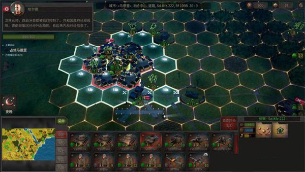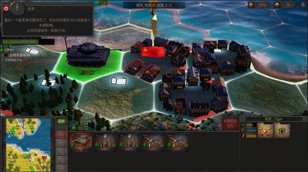 部队移动到优势位置,就可以在下回合攻击城市,或者对敌军开火了。当所有单位都完成了本回合,需要点击结束回合按钮。