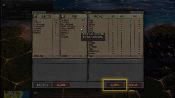指挥点数左边是声望值,可以使用声望值获得更多部队和装备资源。