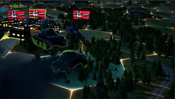 游戏每三个回合会有一次夜晚,夜晚降低所有单位66%的攻击参数和一半的侦察范围,但不会低于1.没有雷达等特殊装备或黑夜猎手等技能,单位在夜间也就无法有效的攻击。同时这也是重新部署和绕侧翼的好时机。