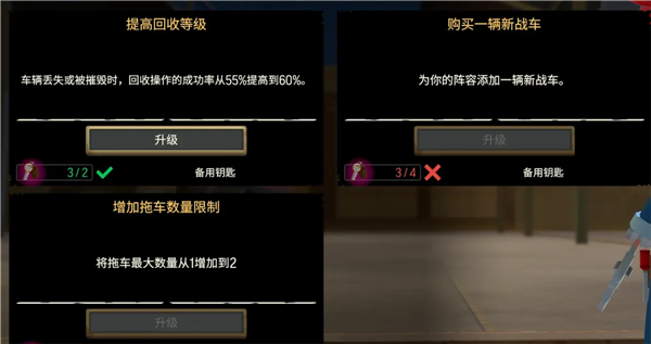 车库设施:增加载具损毁后的免费回收部件比例,减少资源损失。