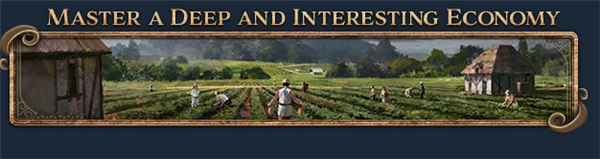 精心运作经济系统,创造繁荣增长的建造大国。手握基础资源起家,采集食物,赚取财富,开动生产。稳步发展后,可将目光投向研究与改良设施,探索最佳转化路径,将简单货物转化为高价值产品。推动地区生产专门化,将铁熔铸成武器或工具,将木头加工成纸张或木材,将黄金熔铸成金币或首饰。将剩余货物按需求输送至各地,充实帝国粮仓,为广布各地的殖民地与工业腹地运送物质,为驻扎在敌人身侧的部队持续输送补给。