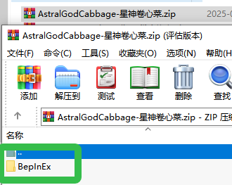 4、以星神卷心菜为例,打开压缩包,复制其内的BepInEx文件。