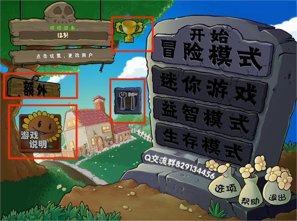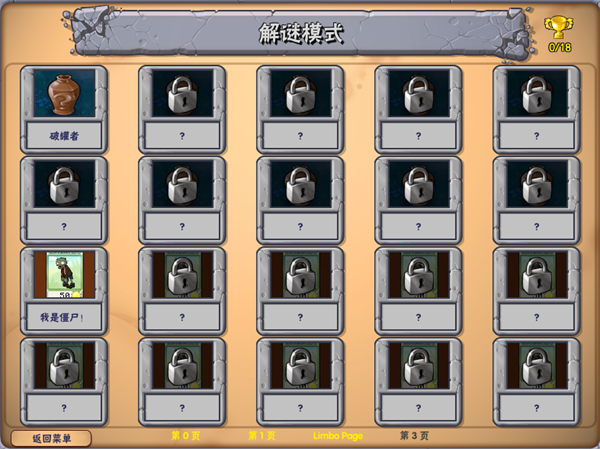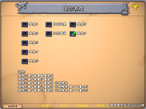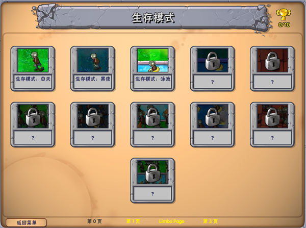 在左上角“额外”中可以发现植物大战僵尸所有经典关卡都在里面,可不要小巧里面的关卡都是发生了巨大的改变!