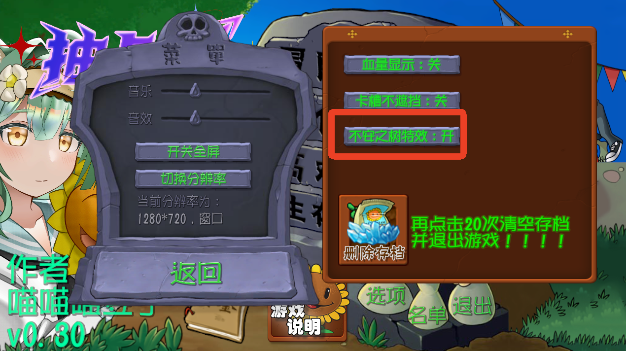 植物大战僵尸抽卡重制版电脑版怎么关闭不安之树的特效